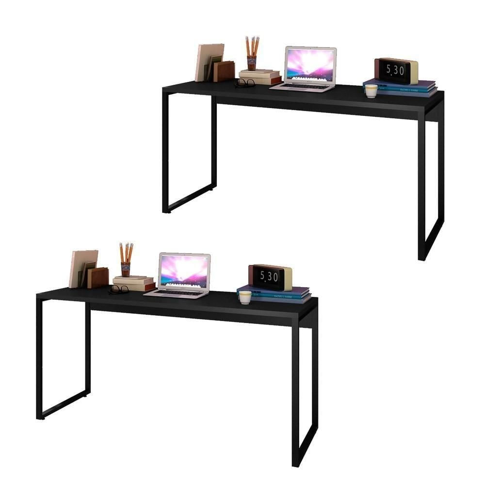 Kit 2 Escrivaninhas Mesas De Escritório Studio Industrial 150 M18 Preto - Mpozenato
