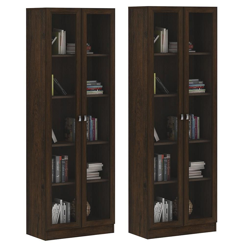 Kit 2 Estantes Escritório 2 Portas De Vidro 4 Prateleiras Cannes 171x59cm T01 Rústico - Lyam Decor