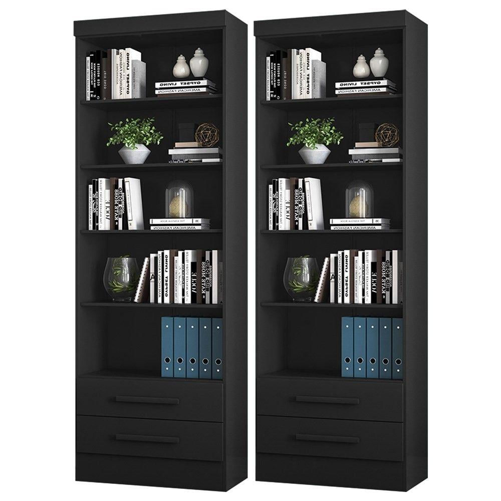 Kit 2 Estantes Livreiro Multiuso 2 Gavetas E 5 Prateleiras Fancy Q01 Preto Fosco - Mpozenato