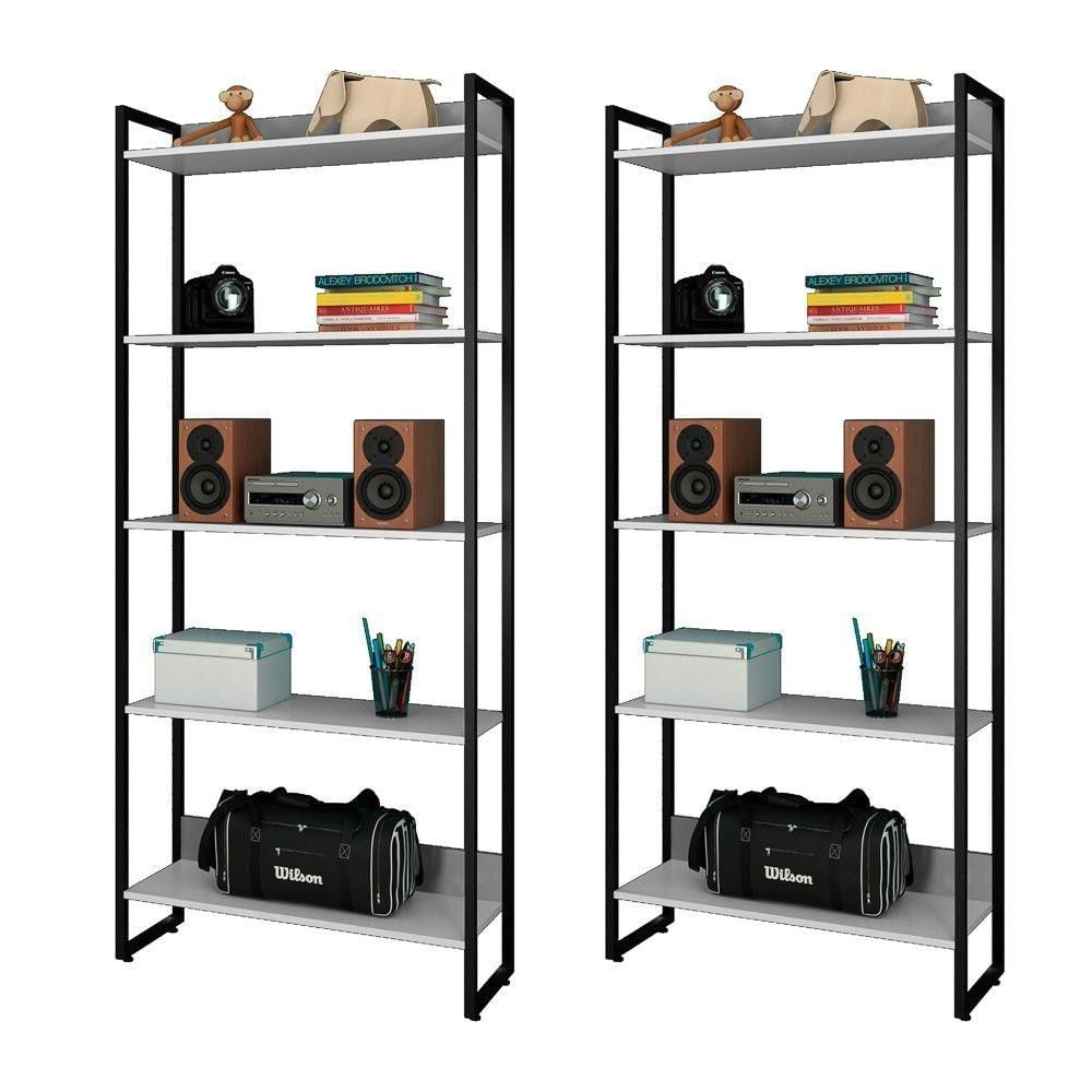 Kit 2 Estantes Livreiro Studio Industrial M18 Branco - Mpozenato