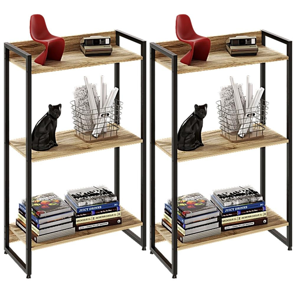 Kit 2 Estantes Multiuso Escritório Industrial 3 Prateleiras Areta 104x60cm C01 Carvalho - Lyam Decor