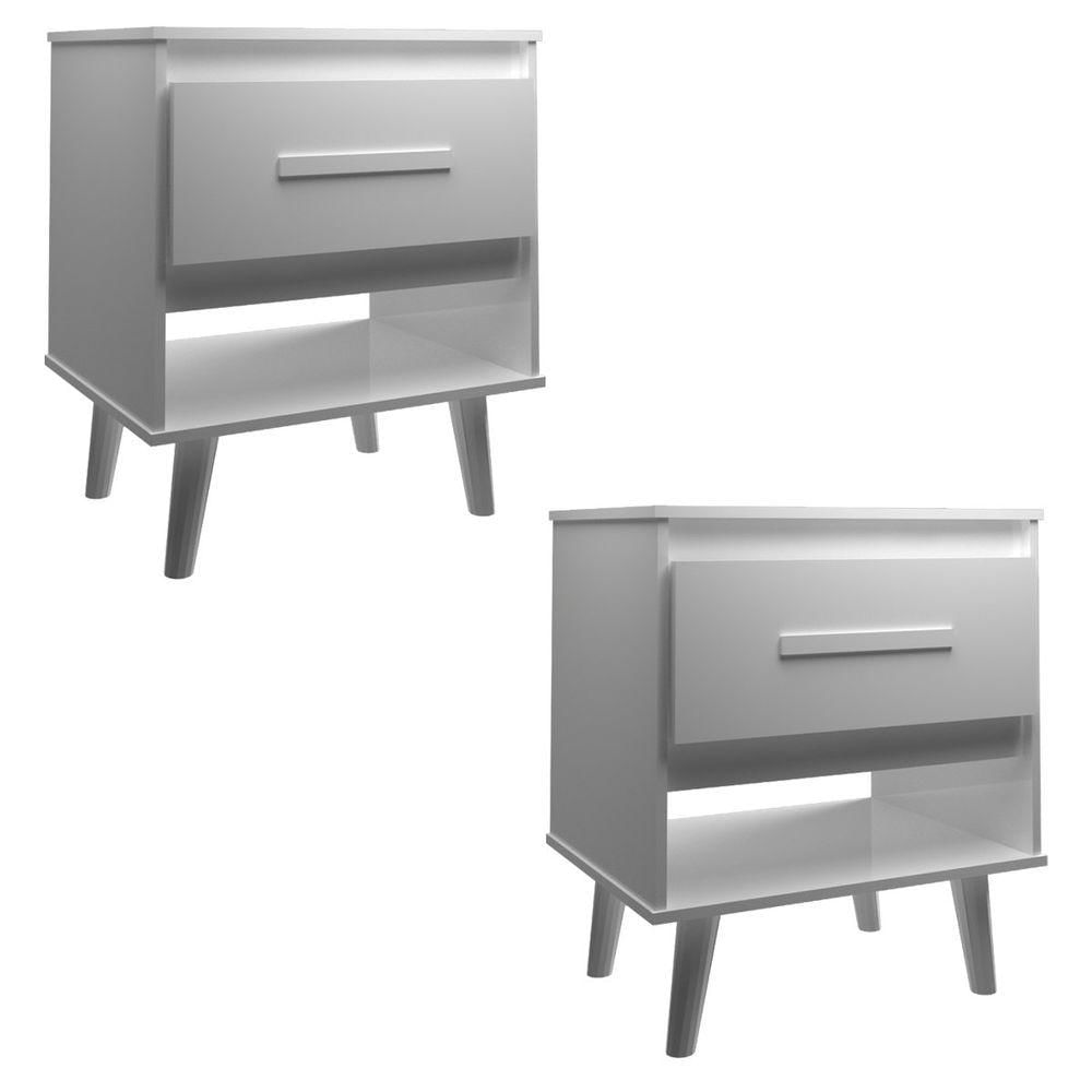 Kit 2 Mesas De Cabeceira 1 Gaveta Com Nicho E Pés Retro Estilo Moderno Para Quarto Branco Mobília Decor