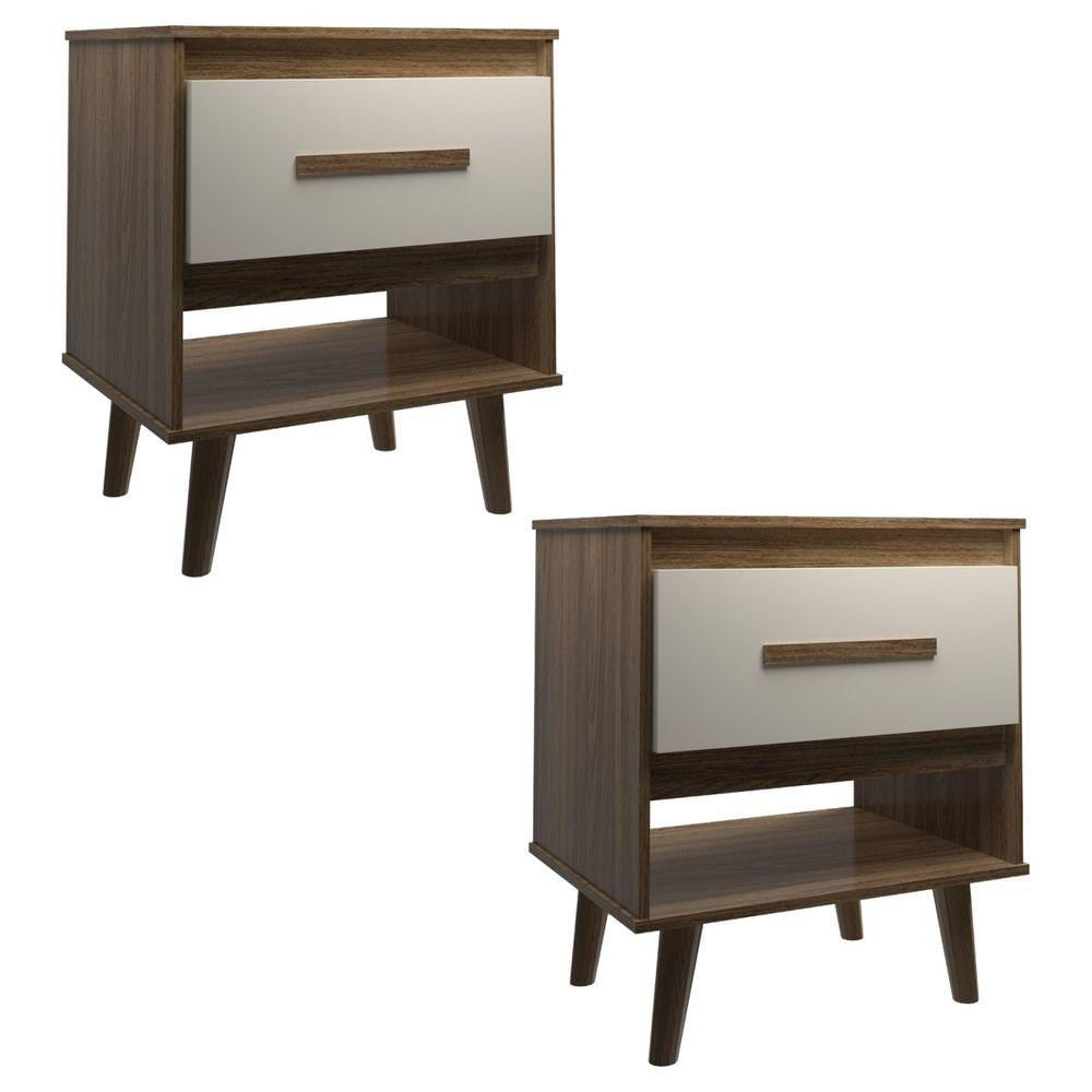 Kit 2 Mesas De Cabeceira 1 Gaveta Com Nicho E Pés Retro Estilo Moderno Para Quarto Savana Mobília Decor
