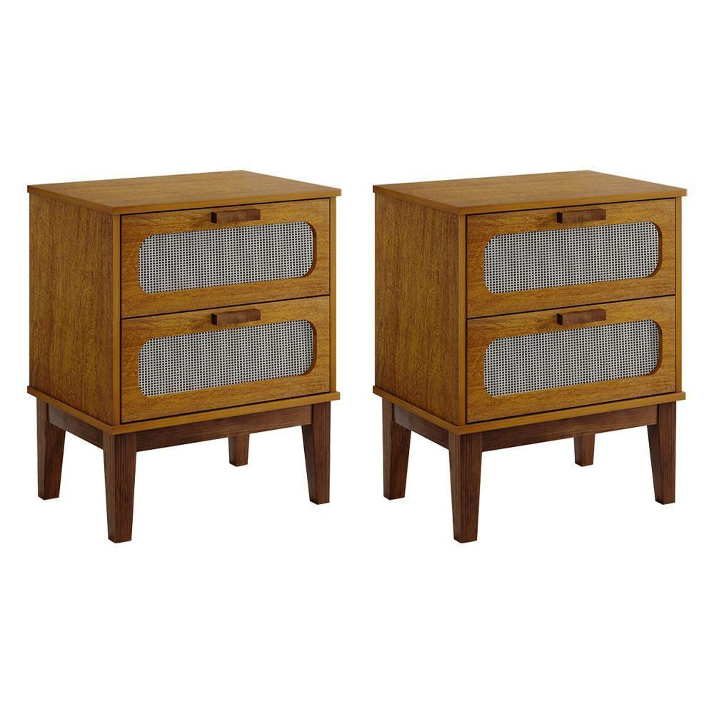Kit 2 Mesas De Cabeceira 2 Gavetas Santorini Nature 45 Cm Com Tela Indiana - Bege