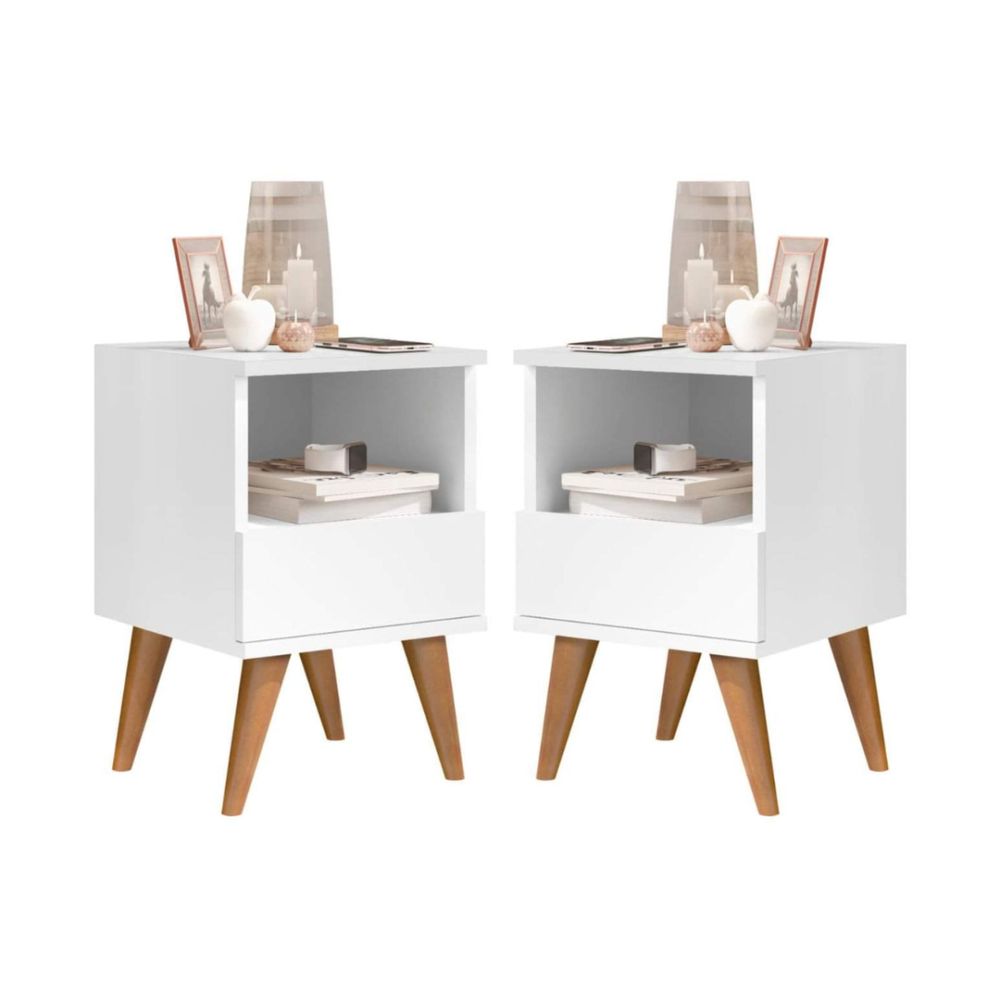 Kit 2 Mesas de Cabeceira Pés Palito Felipe Cores - Comprar Moveis em Casa Branco