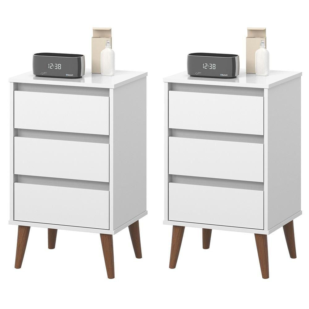 O Kit 2 Mesas de Cabeceira Wood é a escolha ideal para quem busca praticidade e estilo no quarto. Com design moderno e funcional, essas mesas de cabeceira oferecem espaço de armazenamento e um toque elegante ao ambiente.Características Técnicas Dimensões da Mesa de Cabeceira: Altura: 71 cm Largura: 43,5 cm Profundidade: 36 cmMateriais e Estrutura: Produzido em MDP 3 gavetas Corrediças metálicas Gaveta sem puxadores externos Pés em madeira maciça Pintura em UV Produto de alta qualidade Kit de montagem inclusoBenefícios e Funcionalidades Design Moderno: O acabamento e a pintura em UV conferem um toque sofisticado ao ambiente. Praticidade: Com 3 gavetas, oferece espaço suficiente para organizar itens pessoais. Durabilidade: Materiais de alta qualidade garantem resistência e longa vida útil. Estilo e Conforto: Proporciona um ambiente aconchegante e organizado para seu quarto.Observações Importantes Cuidados: Imagens meramente ilustrativas. Objetos de decoração não inclusos ao produto. Montagem: A não oferece de montagem. Todos os móveis acompanham manual de montagem com passo a passo. : Verifique a embalagem ao receber. Caso detecte irregularidade ou violação, recuse o e nos contate.Conteúdo da Embalagem 2 Mesas de Cabeceira Wood 1 Manual de InstruçõesMesas de Cabeceira, Wood, MDP, Pintura UV, Gavetas, Corrediças Metálicas, Madeira Maciça, Quarto, Organização, Decoração, Móveis, Qualidade, Montagem. Cor: Branco