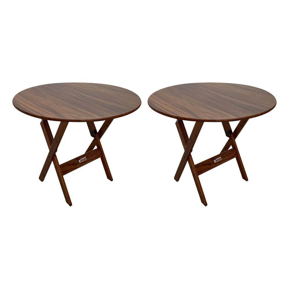 Kit 2 Mesas Dobráveis De Madeira Redonda 90cm Imbuia - TarimatãA Mesa redonda dobrável é ideal para bares, restaurantes, estabelecimentos, áreas de lazer e também para sua casa. Em madeira maciça tornando resistente e durável. Seu design permite ser encaixado em qualquer ambiente, trazendo um toque a mais para seu estabelecimento. Além de sua durabilidade, o que lhe trará conforto para servir seus clientes. Por ser dobrável torna-se mais fácil guardar, manusear e limpar o produto.CARACTERÍSTICASTipo: Mesa DobrávelModelo: RedondoCor: ImbuiaDIMENSÕES DA MESAAltura: 77cmAltura fechado: 98cmDiâmetro: 90cmAtenção: EVITE USAR PRODUTOS ABRASIVOS E QUÍMICOS PARA LIMPEZA DO PRODUTO, aconselha-se o uso de pano umedecido para melhor conservação; mantenha o produto fora de chuva e sol constantes.ATENÇÃOIMAGENS MERAMENTE ILUSTRATIVAS REALIZADO EDIÇÃO, PODENDO HAVER UMA PEQUENA VARIAÇÃO DE COR DEPENDENDO DE CADA TELA OU MONITOR.Kit 2 Mesas Dobráveis de Madeira Redonda 90cm Imbuia - Tarimatã