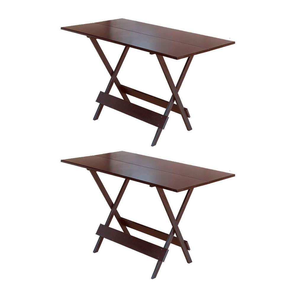 Kit 2 Mesas Dobravel De Madeira 120 X 70 - acabamento com tonalidade Imbuia - Marrom.