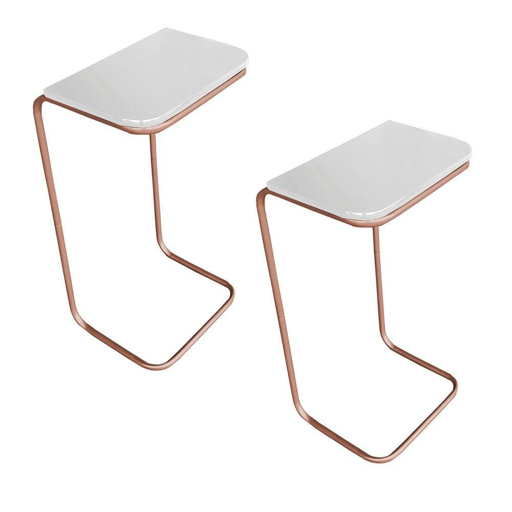 Kit 2 Mesas Lateral Tampo predominância da cor Branco Multiuso P/ Sofá