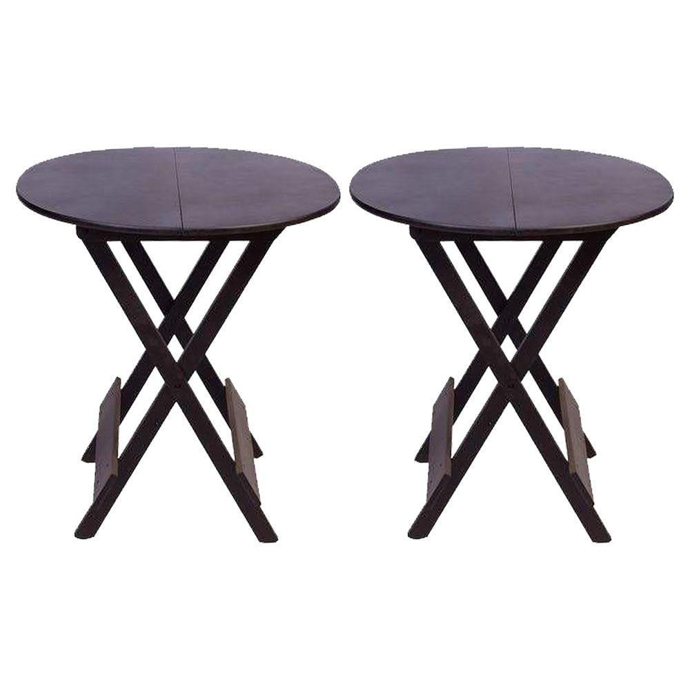 Kit 2 Mesas Redondas Dobráveis Em Madeira Maciça 70X70 Marrom Ideal Para Bares E Restaurantes