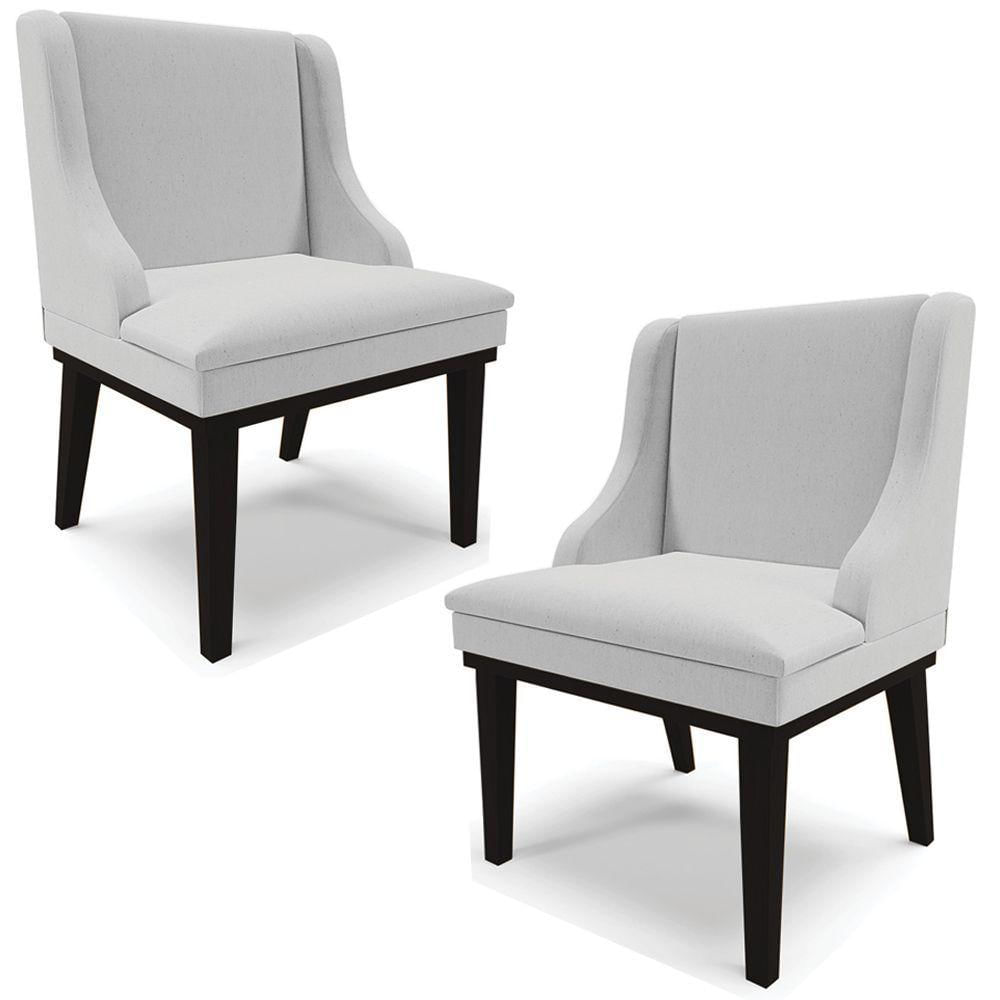 Kit 2 Poltronas Base Fixa De Madeira Linho Cinza/Preto