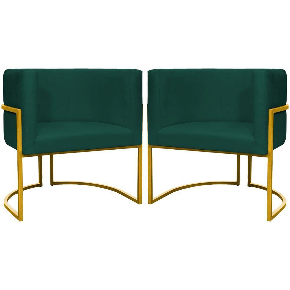 Kit 2 Poltronas Cadeira Para Sala De Luna Suede Cores Base Dourada - Verde, Suede