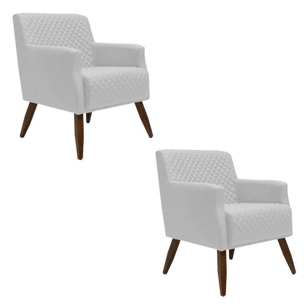 Kit 2 Poltronas Decorativa Nagoya Pés Madeira PU Sintético Branco - Gran Belo