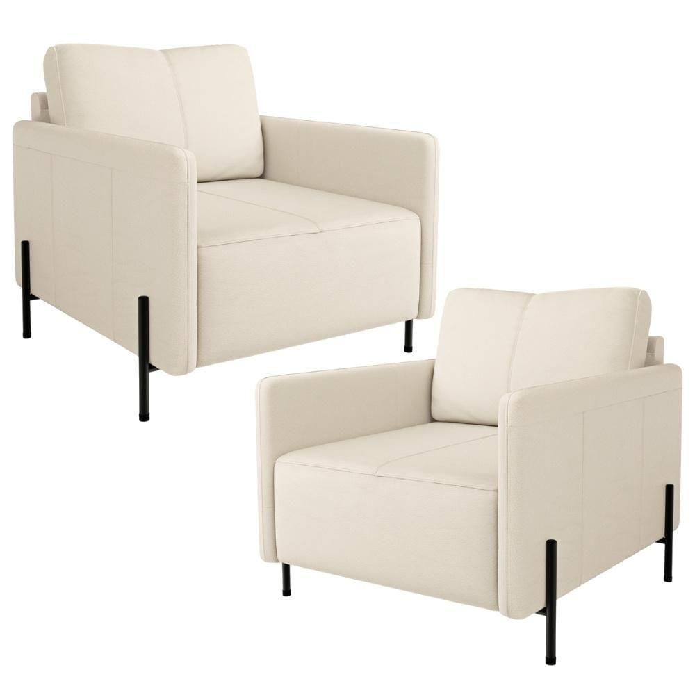 Kit 2 Poltronas Decorativa Para Sala Living Pés Industrial Domani L06 Couro Off White - Lyam Decor