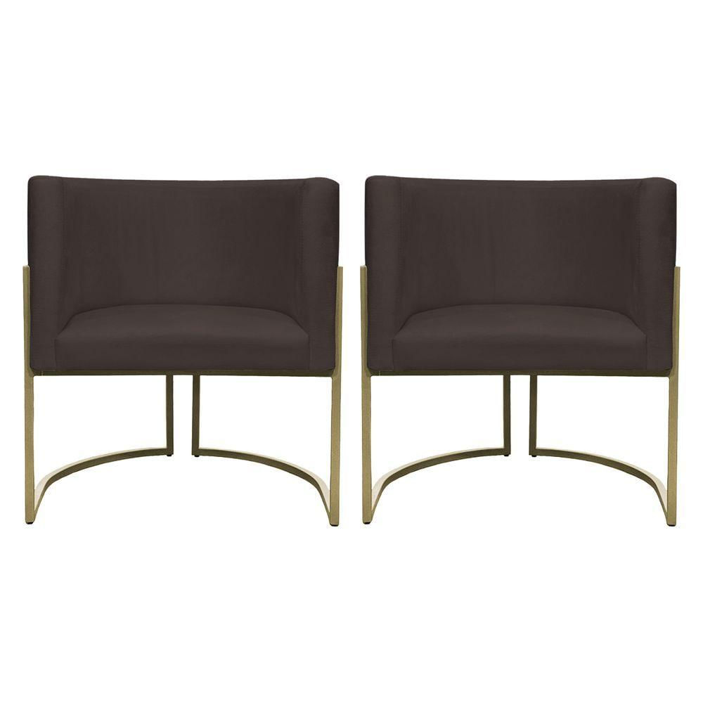 Kit 2 Poltronas Decorativa Recepção Luna Suede Cores Base De Ferro Champagne Marrom Suede