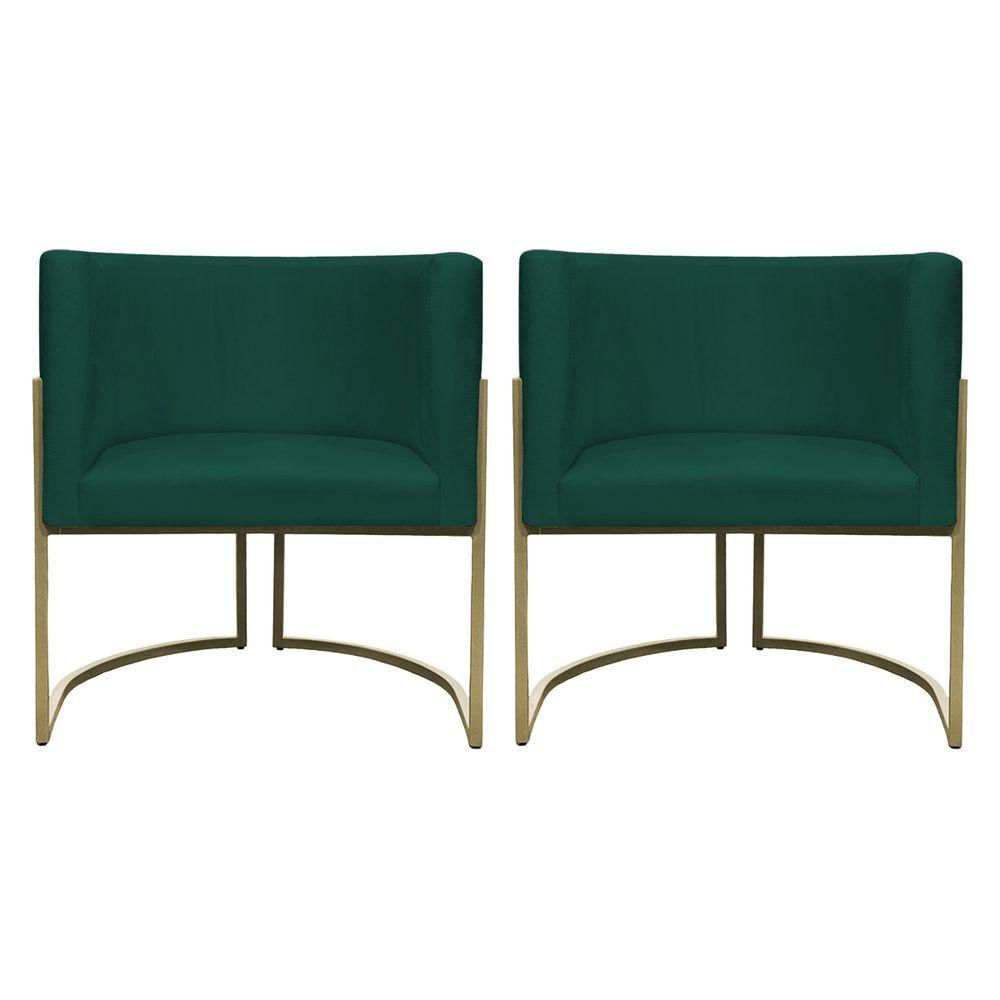Kit 2 Poltronas Decorativa Recepção Luna Suede Cores Base De Ferro Champagne Verde Suede