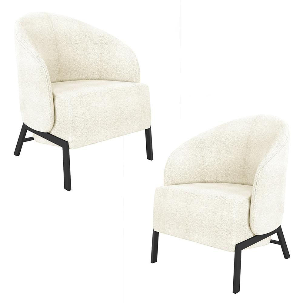 Kit 2 Poltronas Decorativa Sala De Estar Kenya Pés Em Ferro Bouclê Preto/off White G33 - Gran Belo