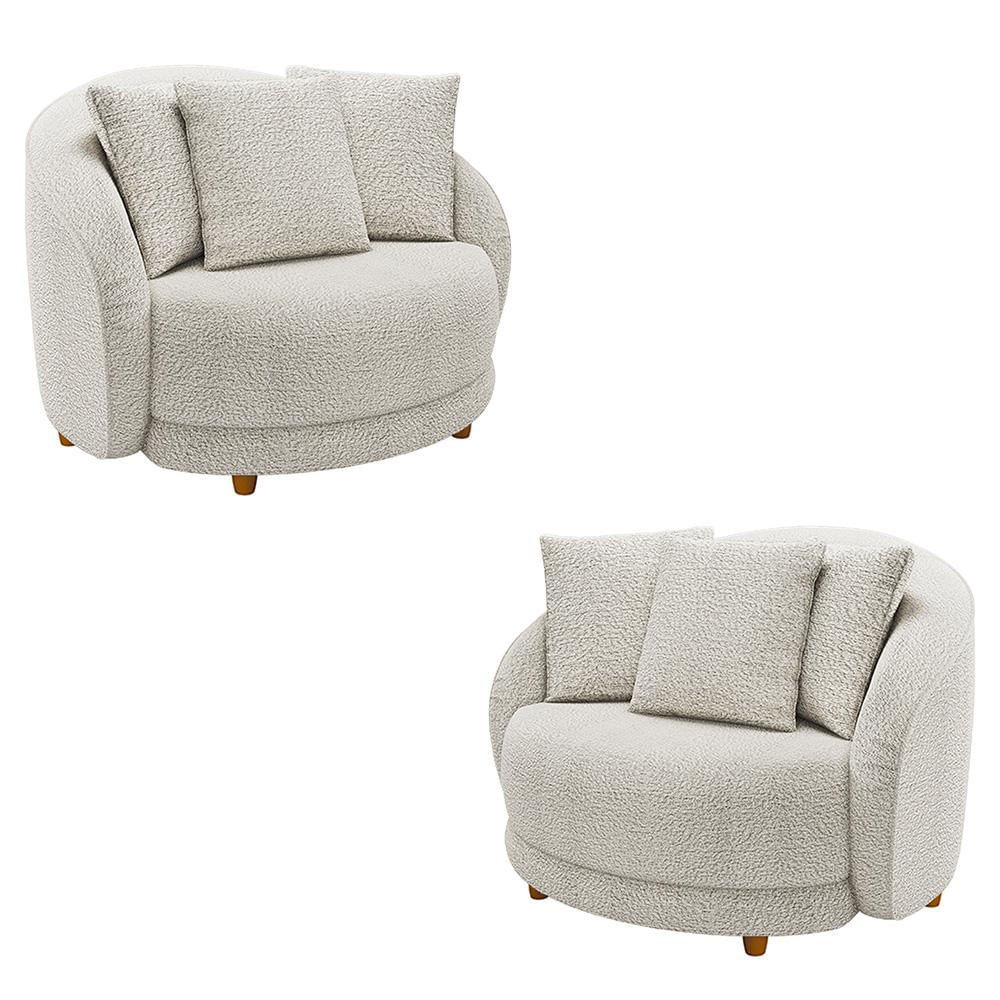 Kit 2 Poltronas Decorativas Base Fixa Galáxia com Almofadas Boucle Branco G45 - Gran Belo