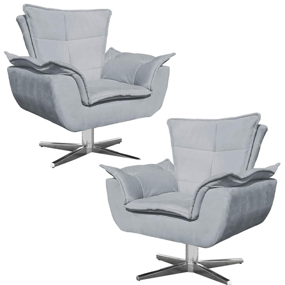 Kit 2 Poltronas Decorativas Base Giratória Cromada Charger Suede Cinza - Gran Belo