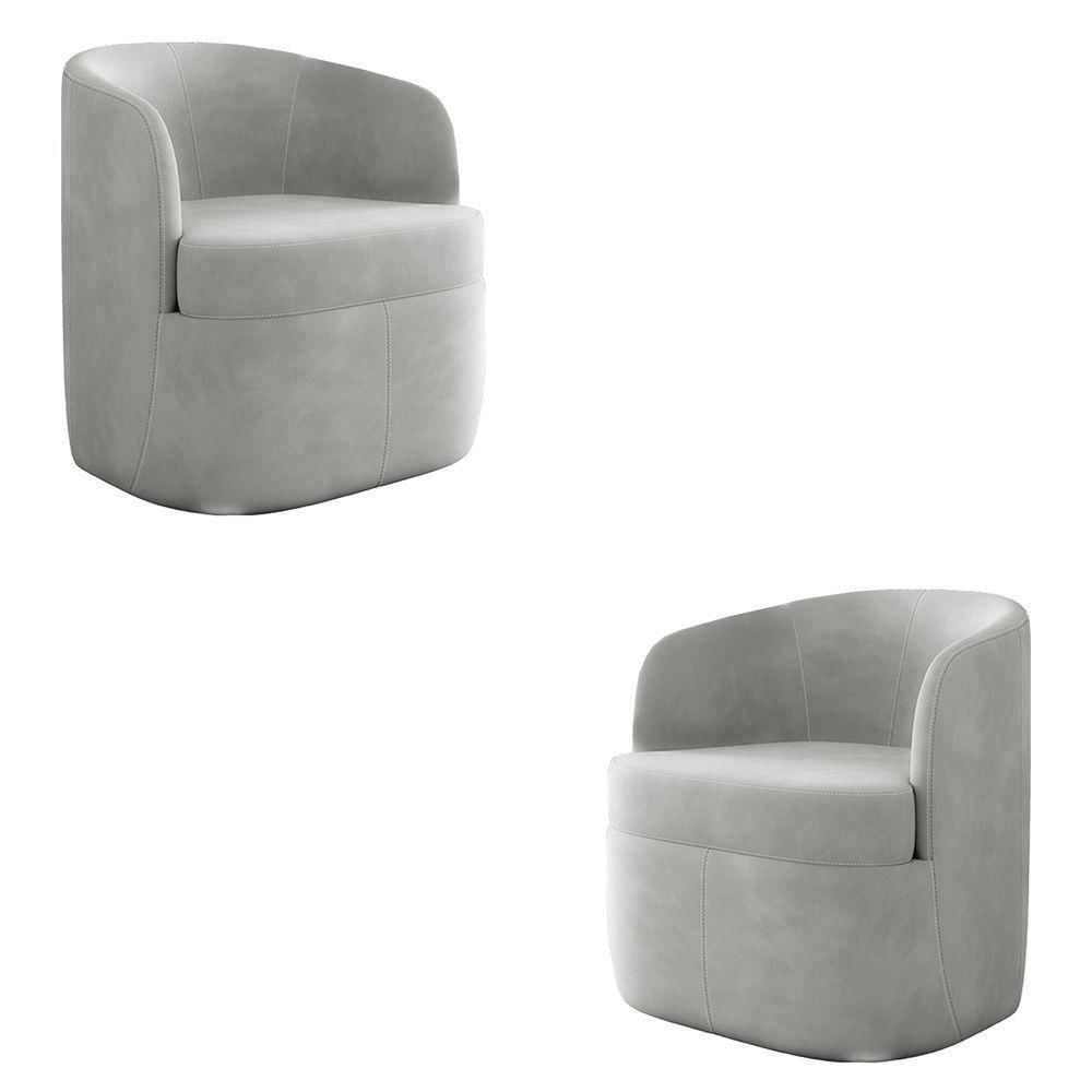 Kit 2 Poltronas Decorativas Design Moderno Bel Sala De Estar Base Giratória Veludo Cinza G33 - Gran Belo
