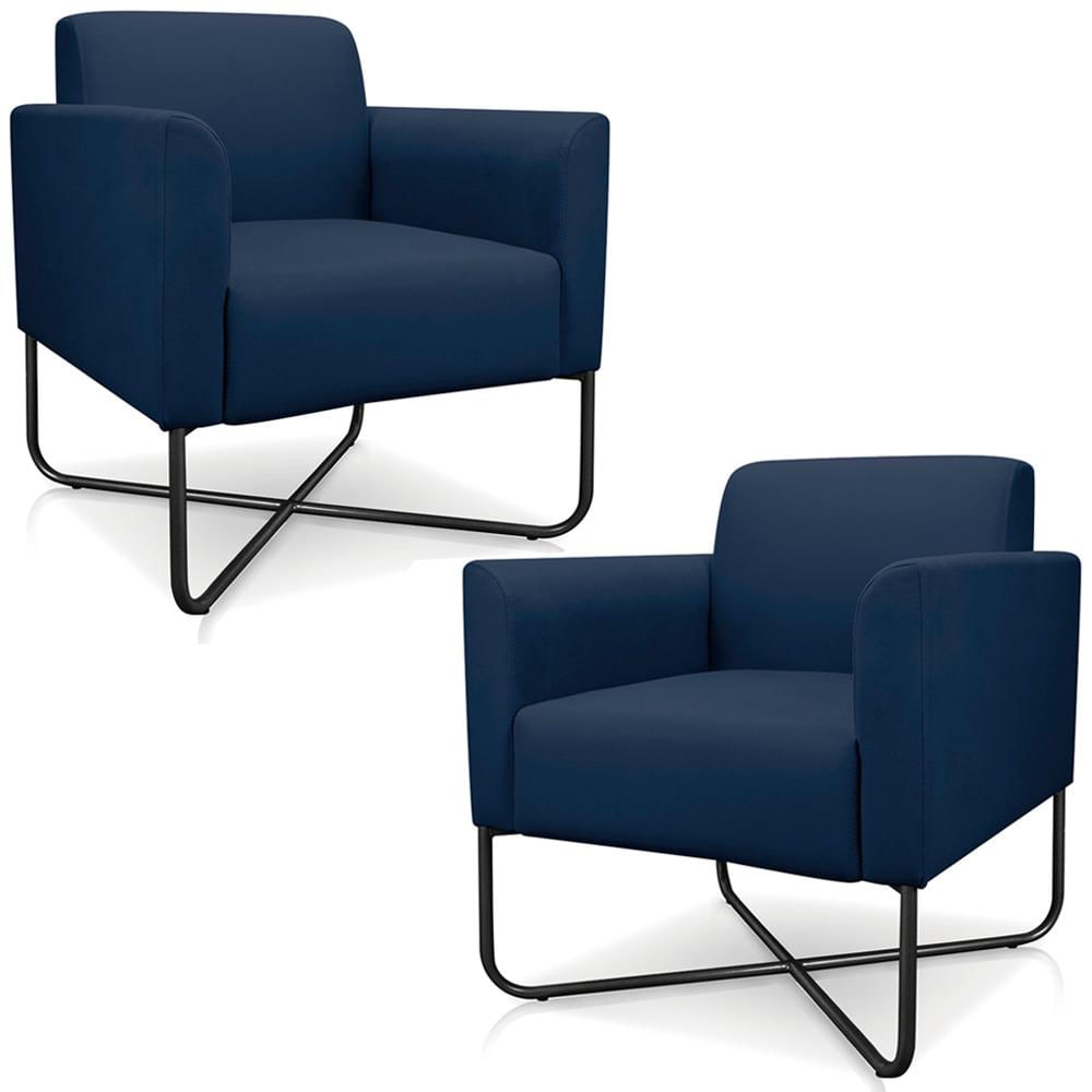 Kit 2 Poltronas Decorativas Isabella Base X Suede Azul Marinho/Preto - Gran Belo