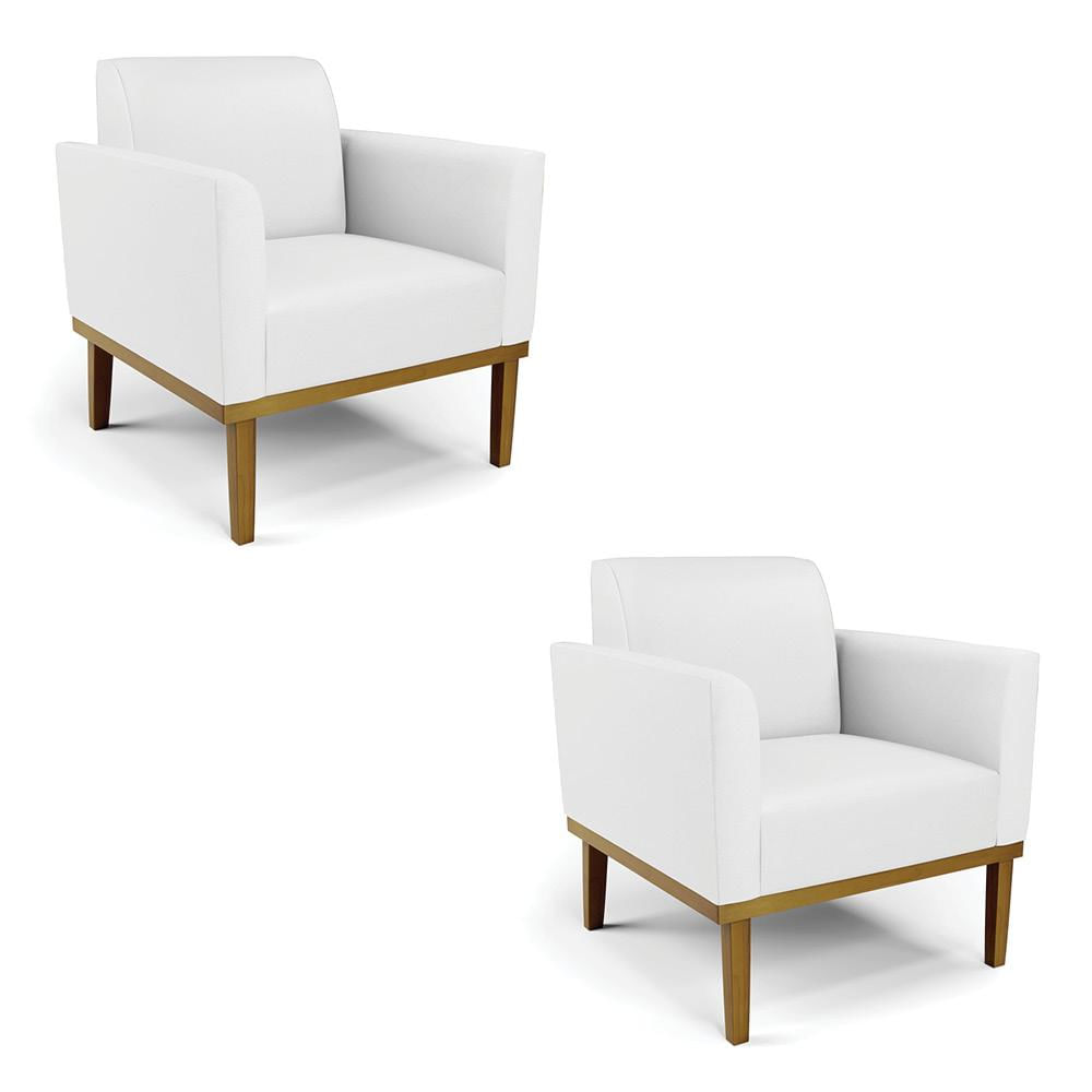 Kit 2 Poltronas Decorativas Isabella Pés Fixo em Madeira Castanho PU Branco G19 - Gran Belo