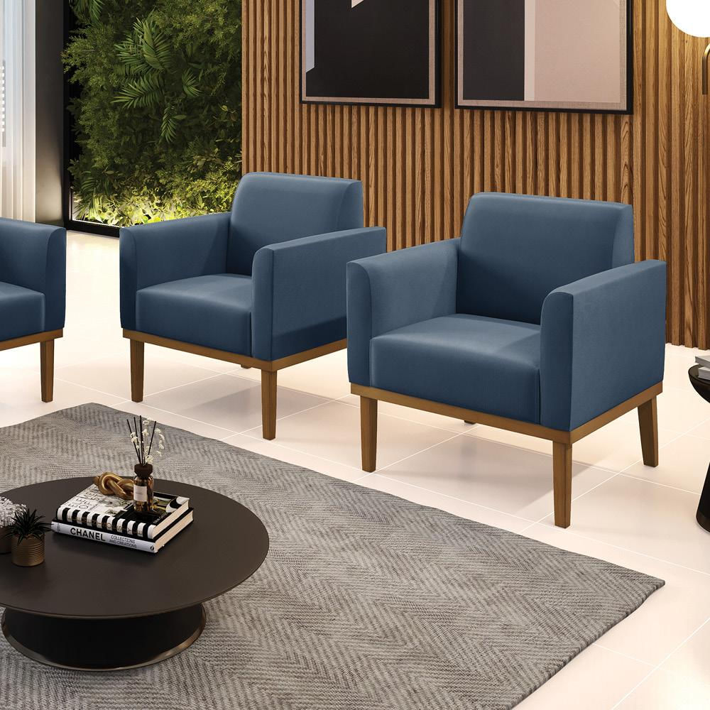 Kit 2 Poltronas Decorativas Isabella Pés Fixo em Madeira Castanho Suede Azul Marinho G19 - Gran Belo