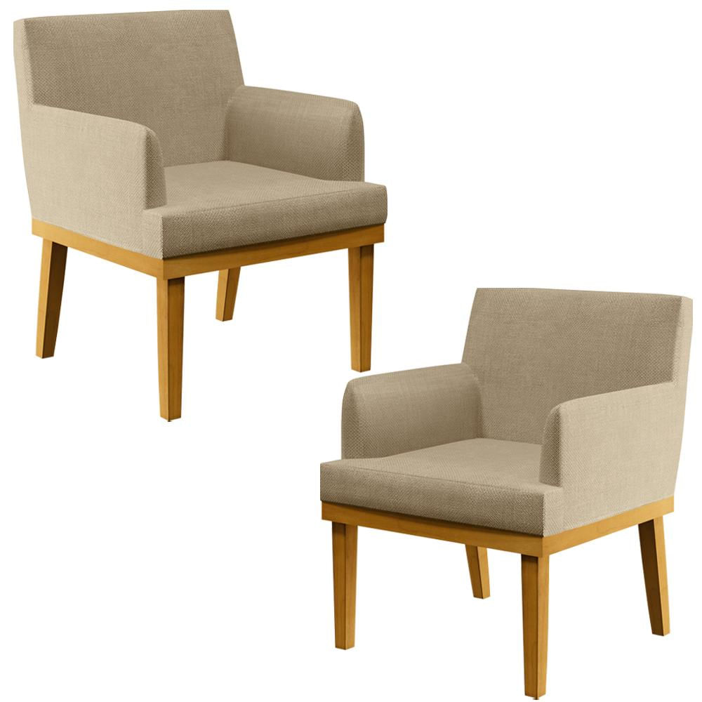 Kit 2 Poltronas Decorativas Para Sala de Estar e Recepção Beatriz W01 Linho Bege Escuro - Lyam Decor