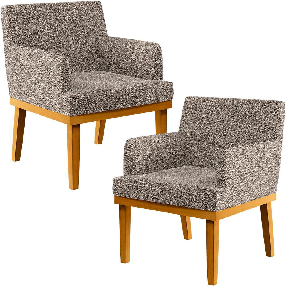 Kit 2 Poltronas Decorativas Sala De Estar E Recepção Base Mel Beatriz W01 Bouclê Bege - Lyam Decor
