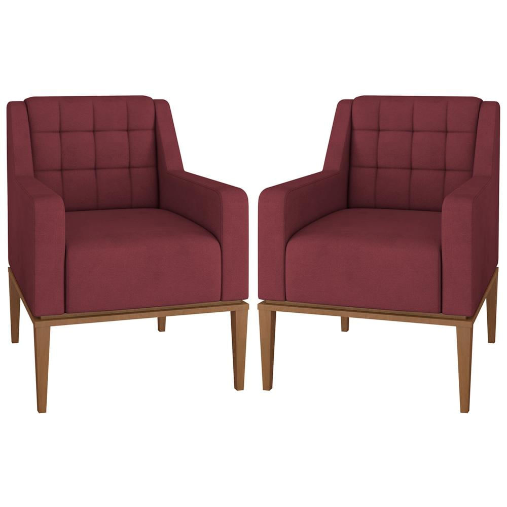 Kit 2 Poltronas Decorativas Sala de Estar Madonna Suede Bordô - Gran Belo