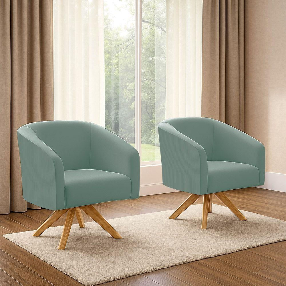Relaxe com a poltrona D'Rossi Stella, um kit com 2 unidades decorativas giratórias em veludo verde para compor ambientes aconchegantes. Com espuma de alta densidade e estrutura em madeira de eucalipto, oferece conforto equilibrado e boa sustentação no uso diário. O revestimento em veludo cotelê proporciona toque macio e visual sofisticado, enquanto a base giratória em madeira facilita o movimento e a interação no espaço. As dimensões compactas ajudam na integração em salas de estar, salas de TV, escritórios ou recepções, combinando facilmente com diferentes estilos de decoração. A tradição da marca em estofados reforça a durabilidade e a funcionalidade do conjunto para uso residencial ou em,