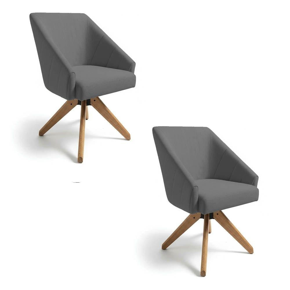 Kit 2 Poltronas Giratórias Alana Linho Grafite Base De Madeira - Pallazio