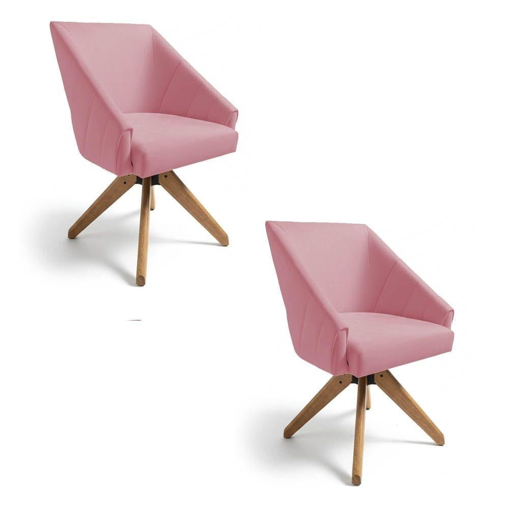 Kit 2 Poltronas Giratórias Alana Veludo Rosê Base De Madeira - Pallazio