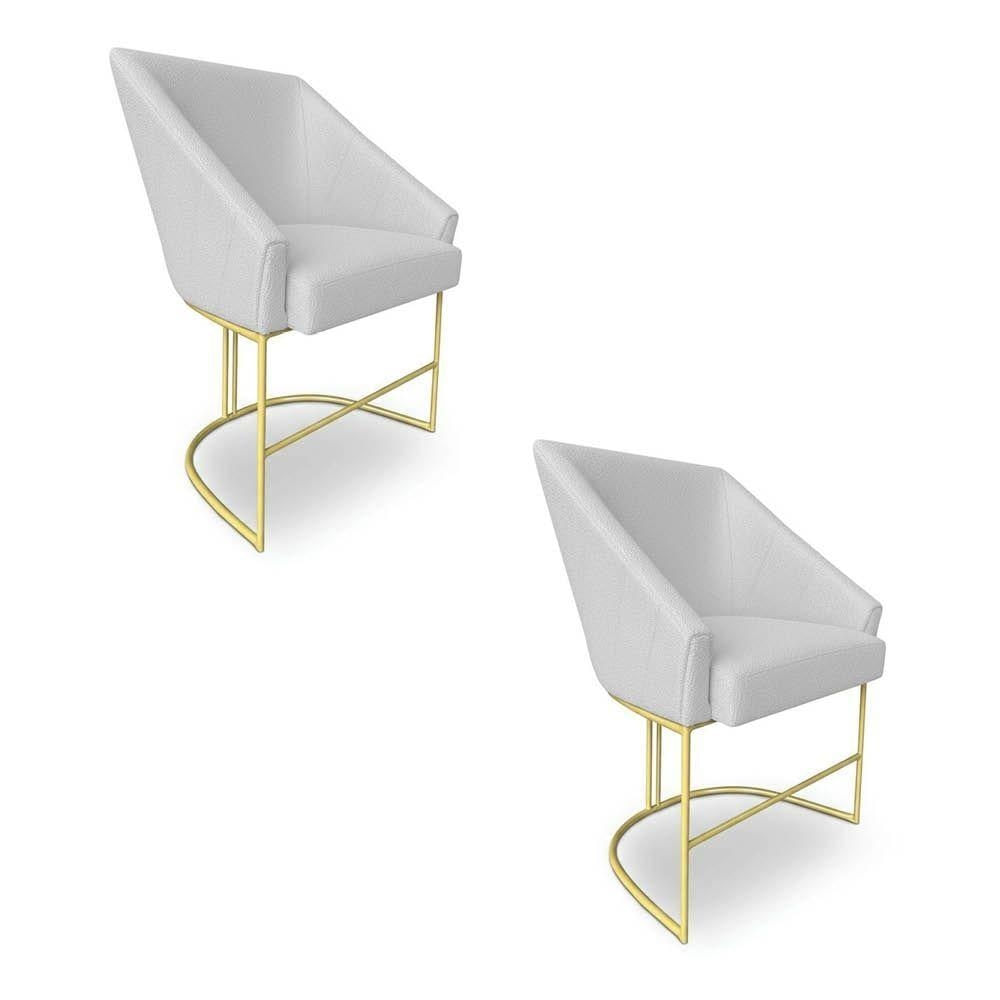 Kit 2 Poltronas Luxo Alana Bouclê Cinza Base Ferro Dourado - Pallazio