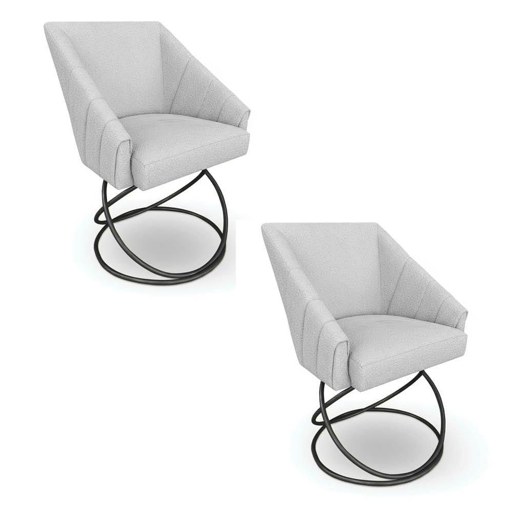 Kit 2 Poltronas Luxo Alana Bouclê Cinza Base Luxo Preto - Pallazio