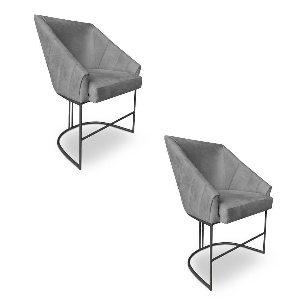 Kit 2 Poltronas Luxo Alana Veludo Grafite Base Ferro Preto - Pallazio