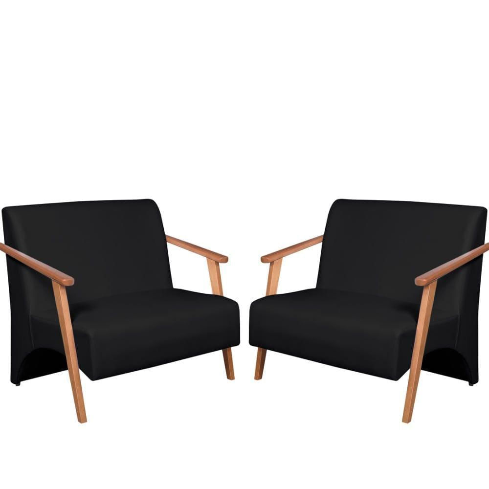 Kit 2 Poltronas Namoradeira Venus Braço Madeira Maciça Tecido Sintético Unidecor Preto