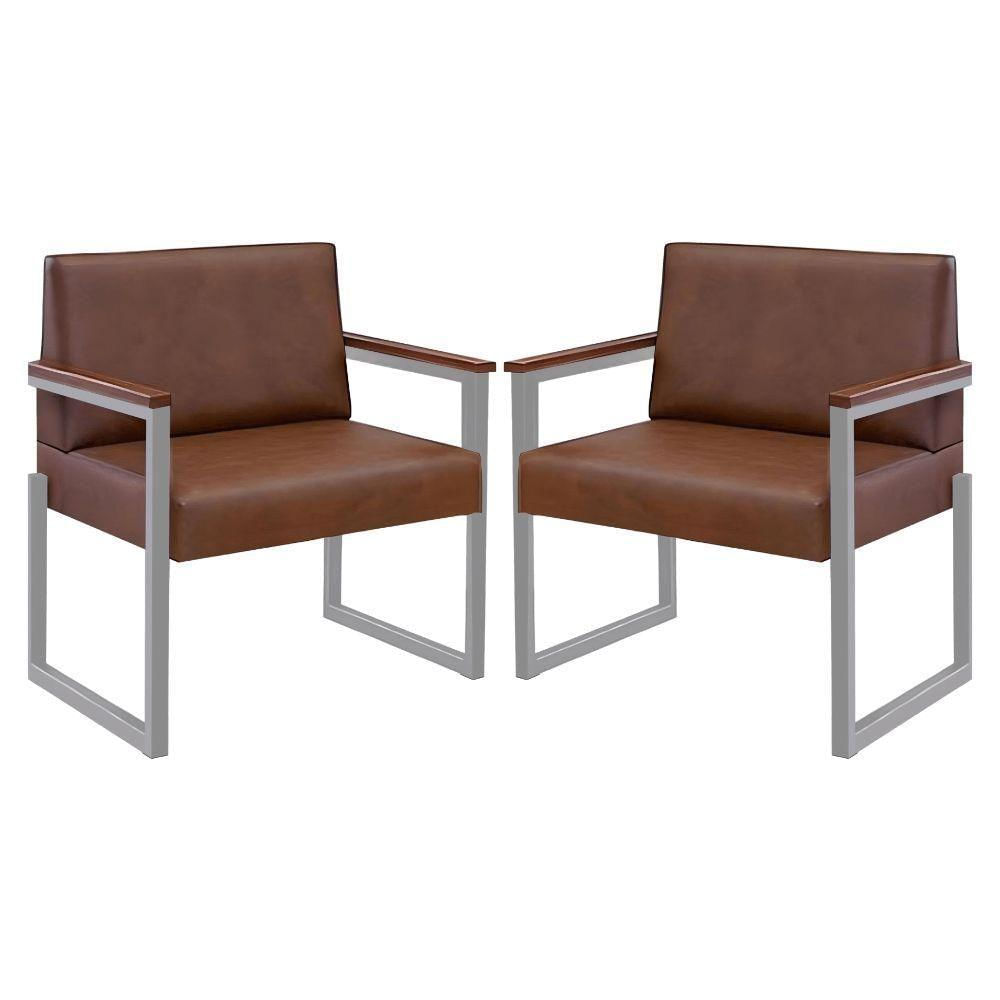 Kit 2 Poltronas Niterói Couro Marrom Em Metal Champanhe