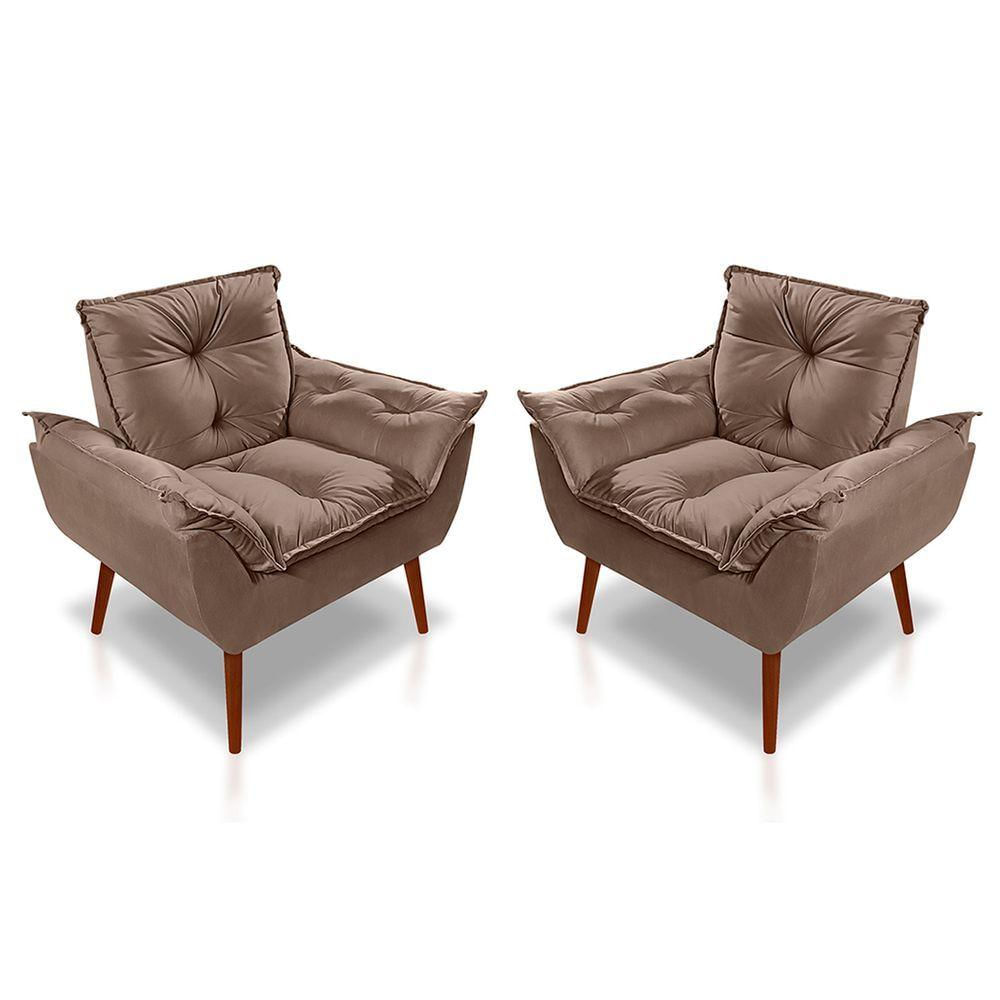Kit 2 Poltronas Opala Decorativa P/ Sala, Quarto E Recepção Suede - Lm Decor Cappuccino