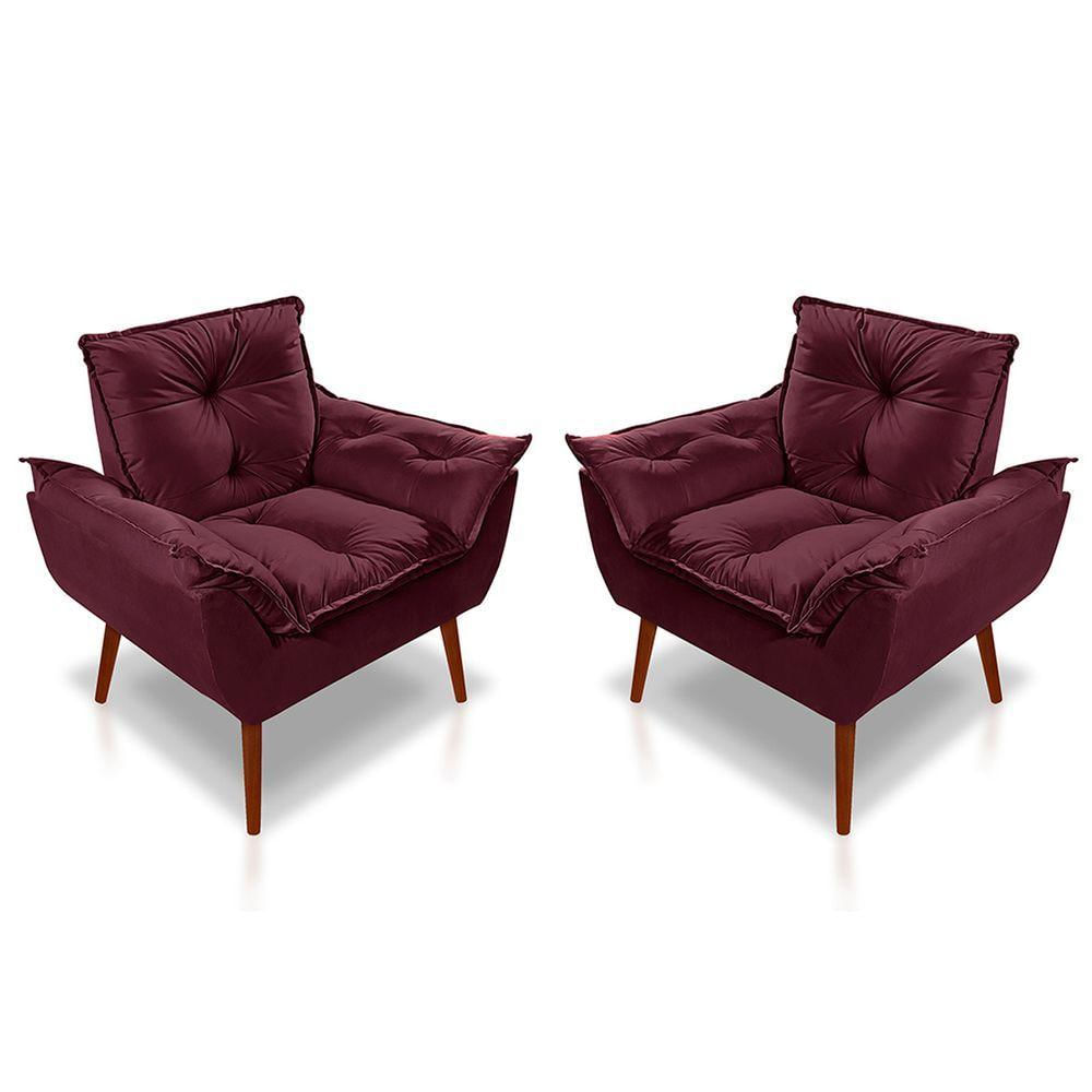 Kit 2 Poltronas Opala Decorativa P/ Sala, Quarto E Recepção Suede - Lm Decor Vermelho Bordô