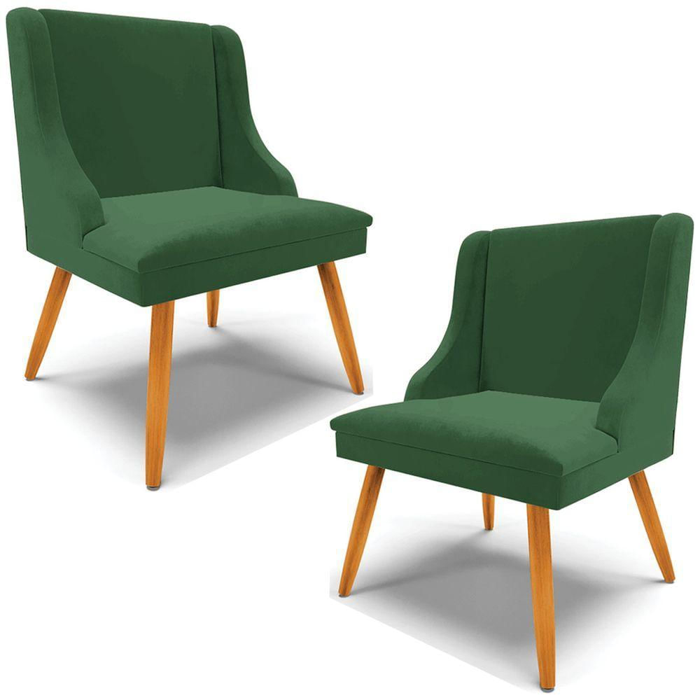 Kit 2 Poltronas Pés Palito De Madeira Veludo Verde/Natural