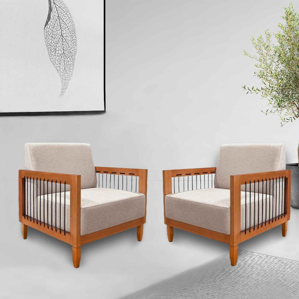 Kit 2 Poltronas Sala de Estar Pés Madeira Maciça Corda Náutica Preta 75cm Manila Linho Areia Rústico G63 - Gran Belo