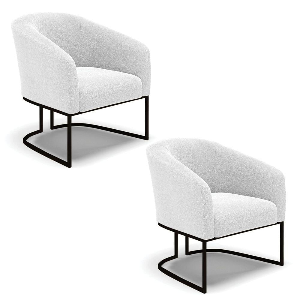 Kit 2 Poltronas Stella Bouclê Base Metálica Industrial Preto - D'rossi Cor Off White