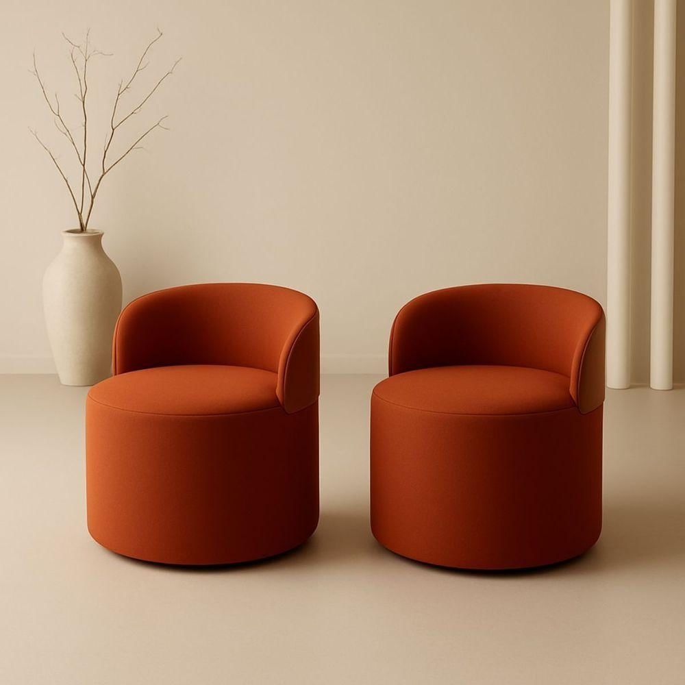 Kit 2 Puff Curvo Com Encosto Redondo Orgânico Sala Confortável Resistente Composé Suede Corino Suede Terracota