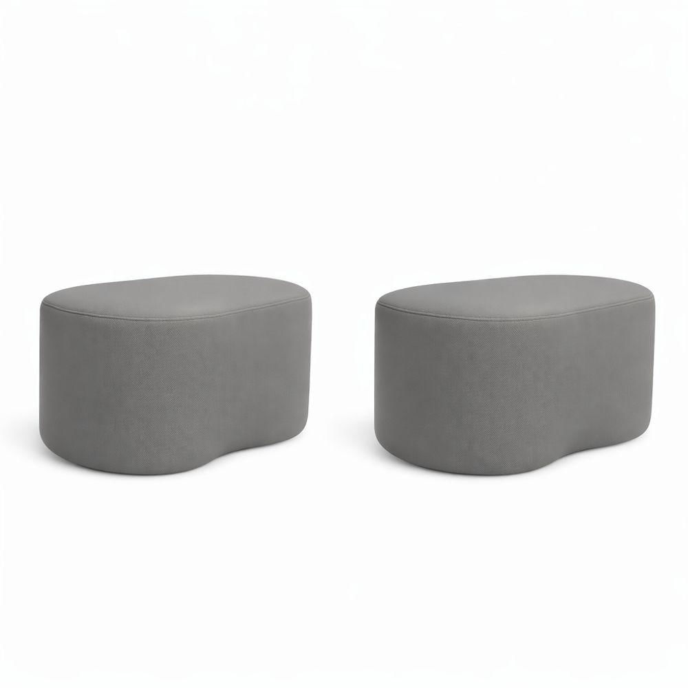 Kit 2 Puff Curvo Feijão Orgânico Sala Redondo Confortável Moderno Linho Cinza