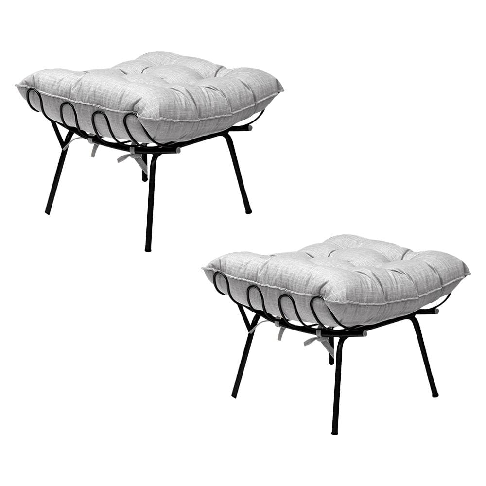 Kit 2 Puff Decorativo Sala de Estar Abel Pés Preto Linho Cinza Claro - Gran Belo