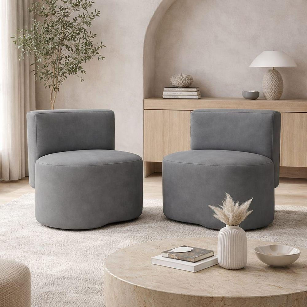 Kit 2 Puff Feijão Com Encosto Orgânico Curvo Redondo Sala Quarto Resistente Confortável Linho Suede Cinza