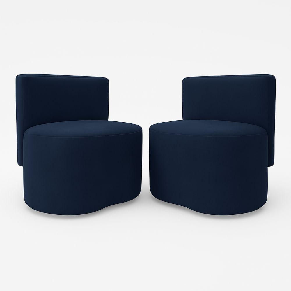 Kit 2 Puff Feijão Curvo Orgânico Redondo Com Encosto Sala Quarto Resistente Confortável Suede Suede Azul