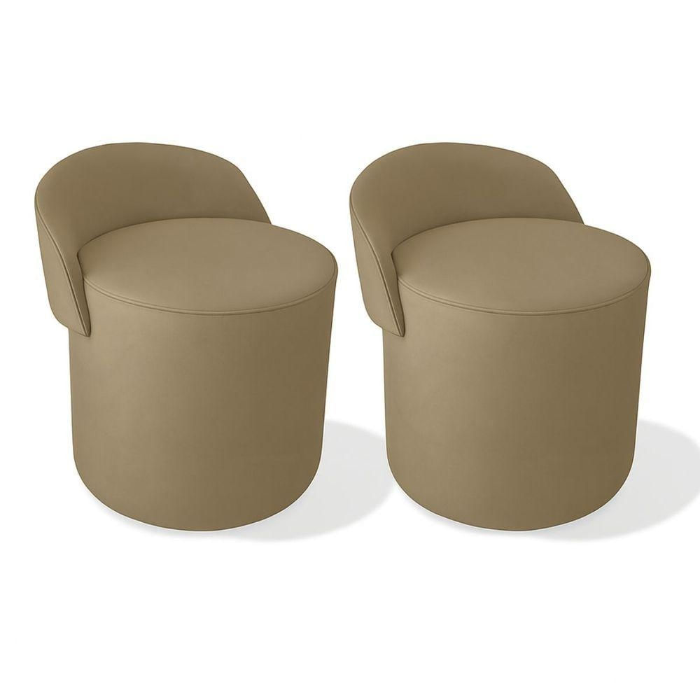 Kit 2 Puff Orgânico Encosto Suede Redondo Quarto Sala Estar capuccino