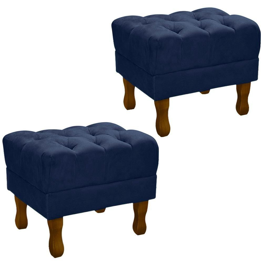 Kit 2 Puff Puf Retro Capitone 52x44cm Suede Azul Marinho Mpassos Azul Marinho Kit 02 Puff Puf Retro Capitone 52x44cm Suede, desenvolvido para você que procura conforto e bem-estar em um único produto, dando um toque de sofisticação e elegância ao ambiente. Estrutura em Madeira de Eucalipto, espuma do assento em D-26, revestimento em tecido suede e acompanha pés retrô em madeira de eucalipto na cor castanho de 15 cm. Suporta até 90kg. Ideal para ser utilizado em sala de estar, ambientes corporativos, hall de entrada ou quarto. Este móvel chegará na sua casa separado em 02 volumes. Dimensões (2 un) Altura 43 cm Largura 52 cm Profundidade 44 cm